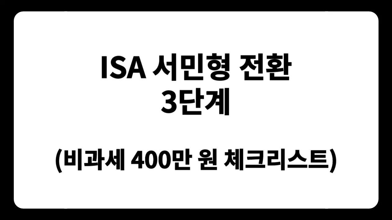 ISA 서민형 전환 방법, 3단계 절차·조건 체크리스트(2026)